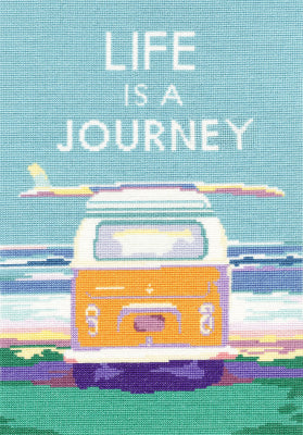 Live is a Journey kit includes White 14-ct. aida cloth, cotton floss, chart with instructions and a needle.