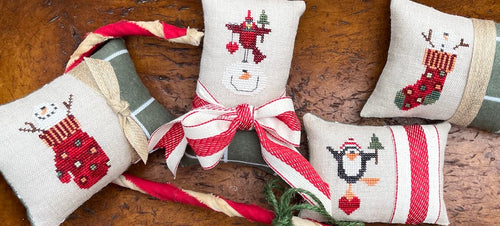 Pillow models stitched on 28 ct. Arctic linen from Picture This Plus and Fra...- Regular price