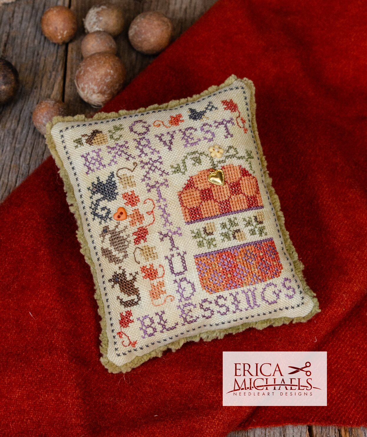 **Two hand-dyed buttons and a brass charm are included in the chartpak.