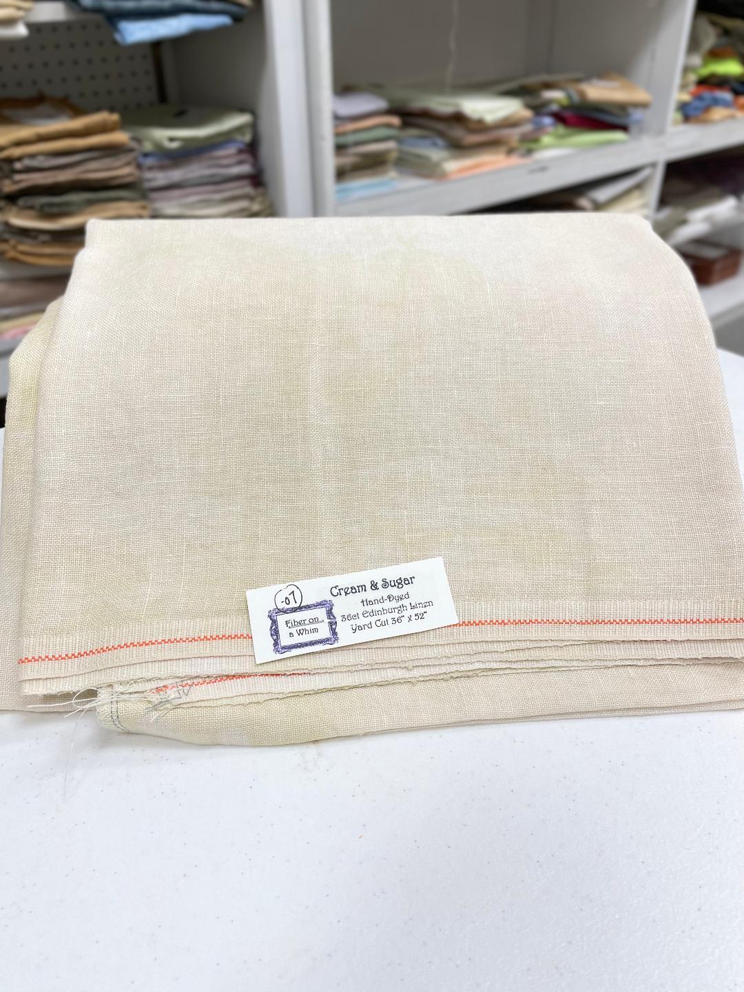 The model is stitched on 36 ct. Cream & Sugar by Fiber on a Whim.