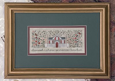 Model stitched on 32 ct.  Weathered Roses Belfast linen (32 ct. Blush linen ...