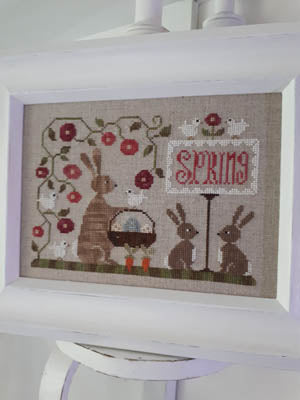 Model stitched on 32 ct. Natural linen using- Gentle Arts: Chalk, Barn Grey...- Regular price