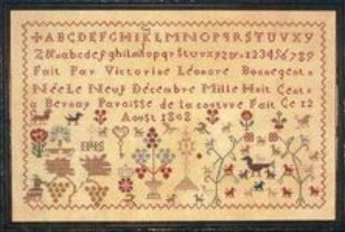 Model is stitched on 28ct.Platinum Cashel linen using Victorria Sampler Acc...