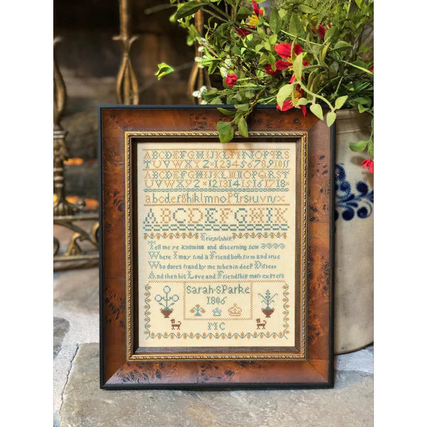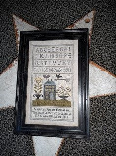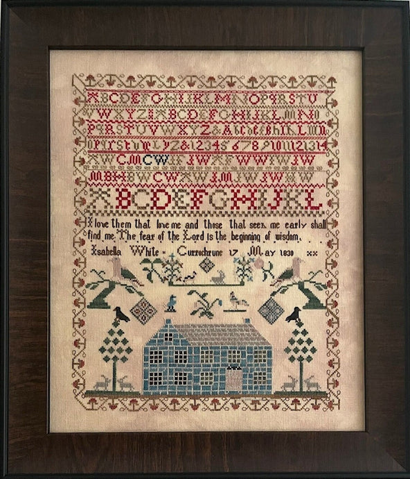 Caroline Broomhead 1838 Sampler Model stitched on 36 ct. Ligonier Latte linen...- Regular price