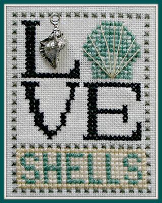 Love Shells has a shell charm, Love 2 Dance has a heart charm and Love 2 Garden has a flower and spade charm.  Finished size is approx. 2 1/4" x 3"