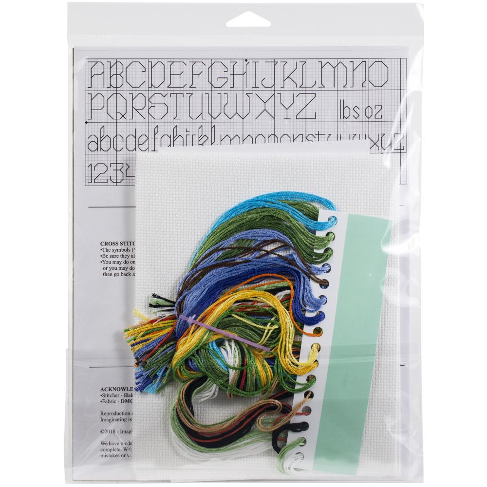 Kit includes 14 count fabric, floss, one needle, one layout page and