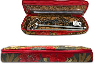 Tool Box ~ Measuring just 12"W x 4"H x 2"D with a hard bottom and top it’s the perfect place to store all your tools. The top opens to reveal 2 clear zippered dividers. The bottom of the box is divided into 2 sections to keep your tools separate. Perfect to protect your laying tools, scissors glasses or anything else you have with you.