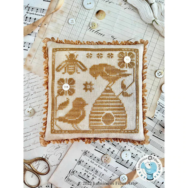 Model stitched on 32 ct. Sparrow Linen from Luminous Fiber Arts or