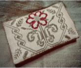 Model stitched on 30 ct. Ivory linen using: DMC: 543, 150, 3752, 3722, 3041, ...- Regular price