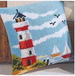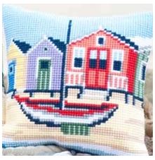 Vervaco-Cushion Cross Stitch Kit includes a large hole (10 ct) 100% cotton Zw...