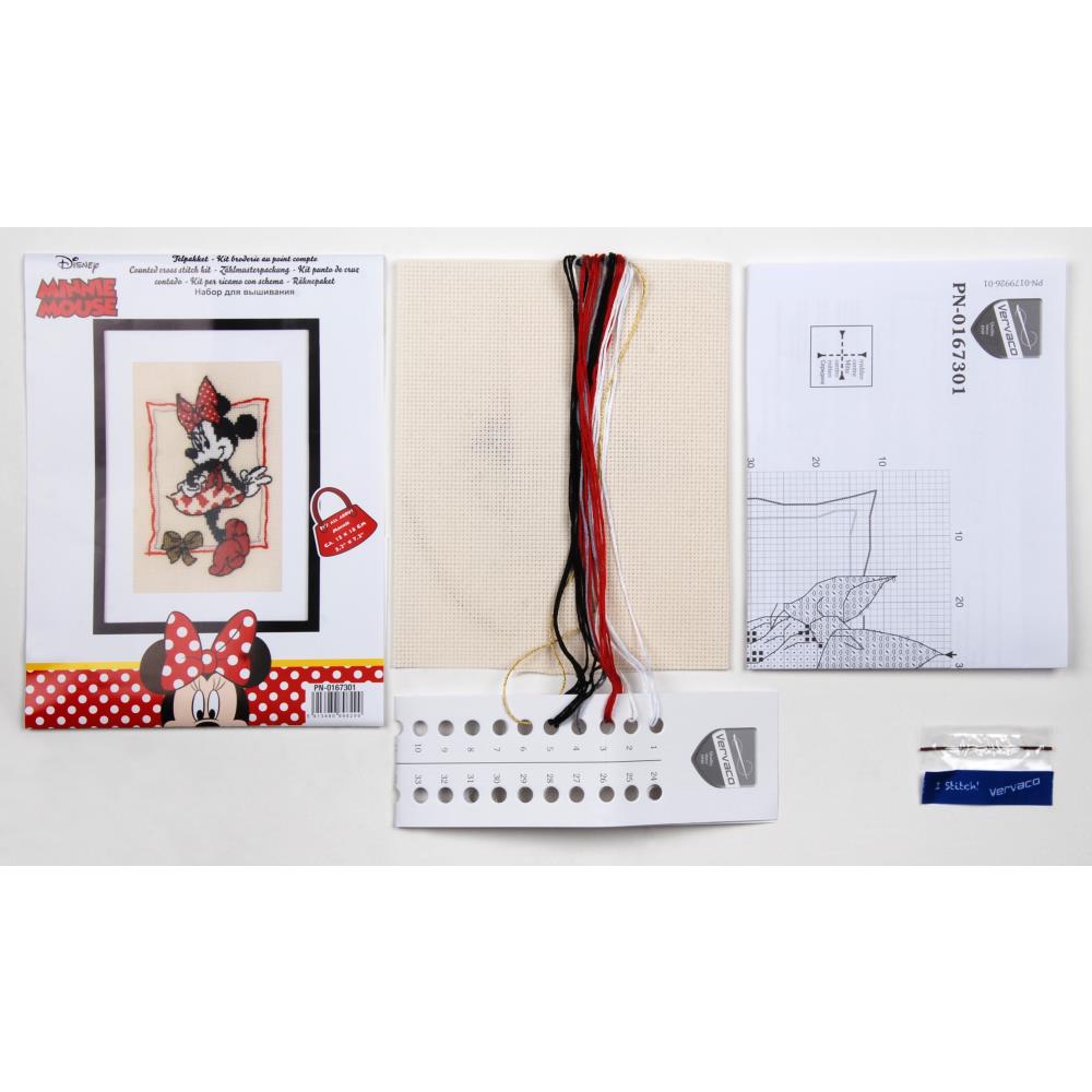 Kit includes 14 count 100% cotton fabric, 100% cotton DMC embroidery floss, one needle, large-square charted design, frontsheet, and instructions in eight languages.