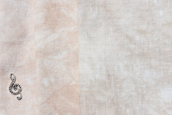 Model stitched on 32 ct. Pistachio Frappe linen from Grace Notes Fabrics
