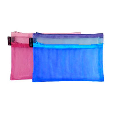 Double-zipper color mesh bags by Walker are great for organizing your needlepoint projects. Put your canvas and stitch guide in the larger pocket and threads or tools in the smaller one.
