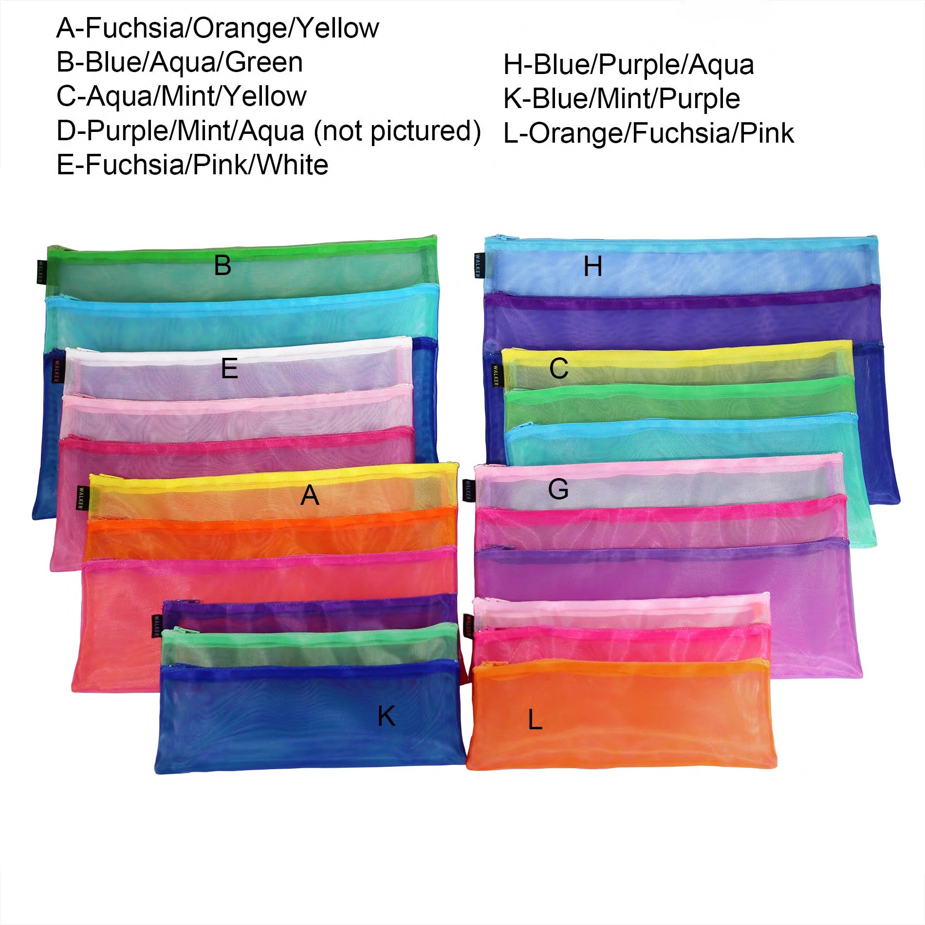 Triple-zipper color mesh bags by Walker are great for organizing your needlepoint projects. Put your canvas and stitch guide in the largest pocket, threads in the second, and tools in the third.