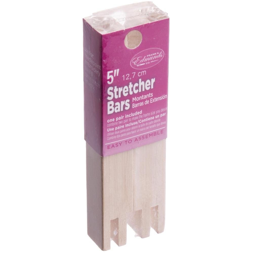 These stretcher bars are for needle arts and measure 5" long, 3/4" wide, and 3/4" in depth. Stretcher bars eliminate movement and keep work taut and clean. Combine any 2 sizes to form the exact frame desired. Wood is plain