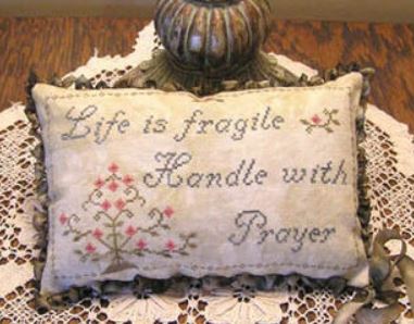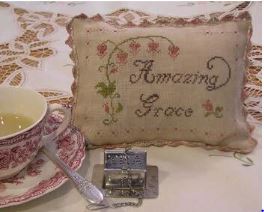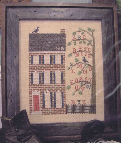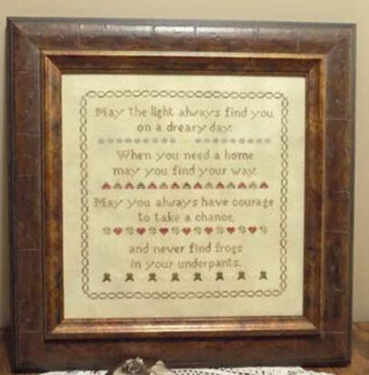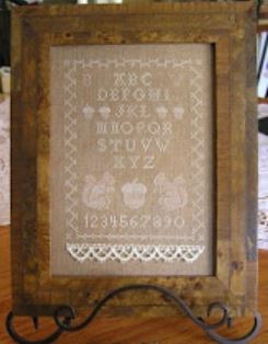 Model stitched on 32 ct. 18th Century Brown linen from R&R Reproductions ...- Regular price