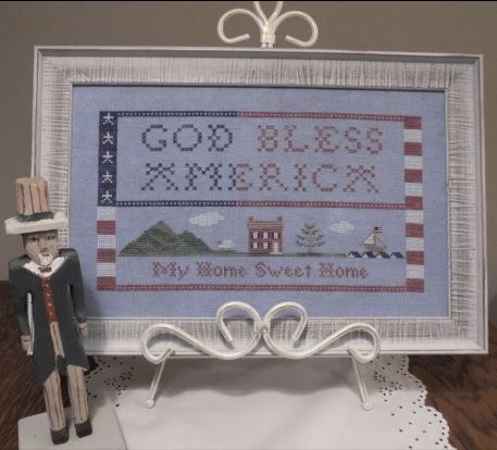 Land of the Free Model stitched on 36 ct. Confederate Grey linen from We...- Regular price