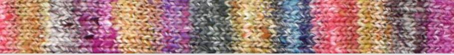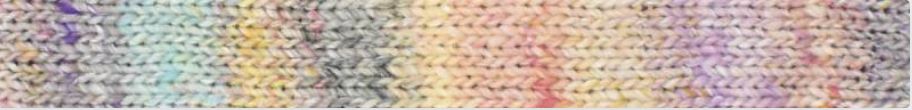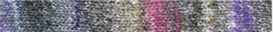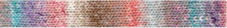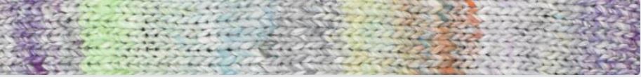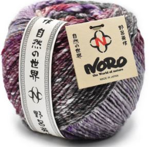 The Noro Rikka is a voluminous yarn and a typical Noro blend of Merino wool & Corriedale, combined with the softest Peruvian alpaca, and undyed mulberry silk. The yarn and the finished knitted fabric appear to be covered with a touch of white.