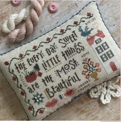 Model stitched on 32 ct. Summer Khaki Belfast linen using Gentle Arts:...- Prix normal