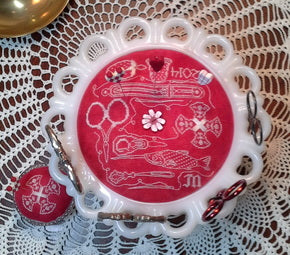 Large Candy Dish Pincushion Model stitched on 28 ct. Phoenix linen by Picture...- Prix normal