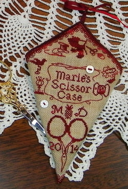 Scissor Case Model stitched over one on 28 count Vintage Country Mocha linen ...- Prix normal