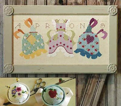 Models stitched on 28 ct. Water Lily Linen using DMC: 152, 353, 469, 470...- Prix normal