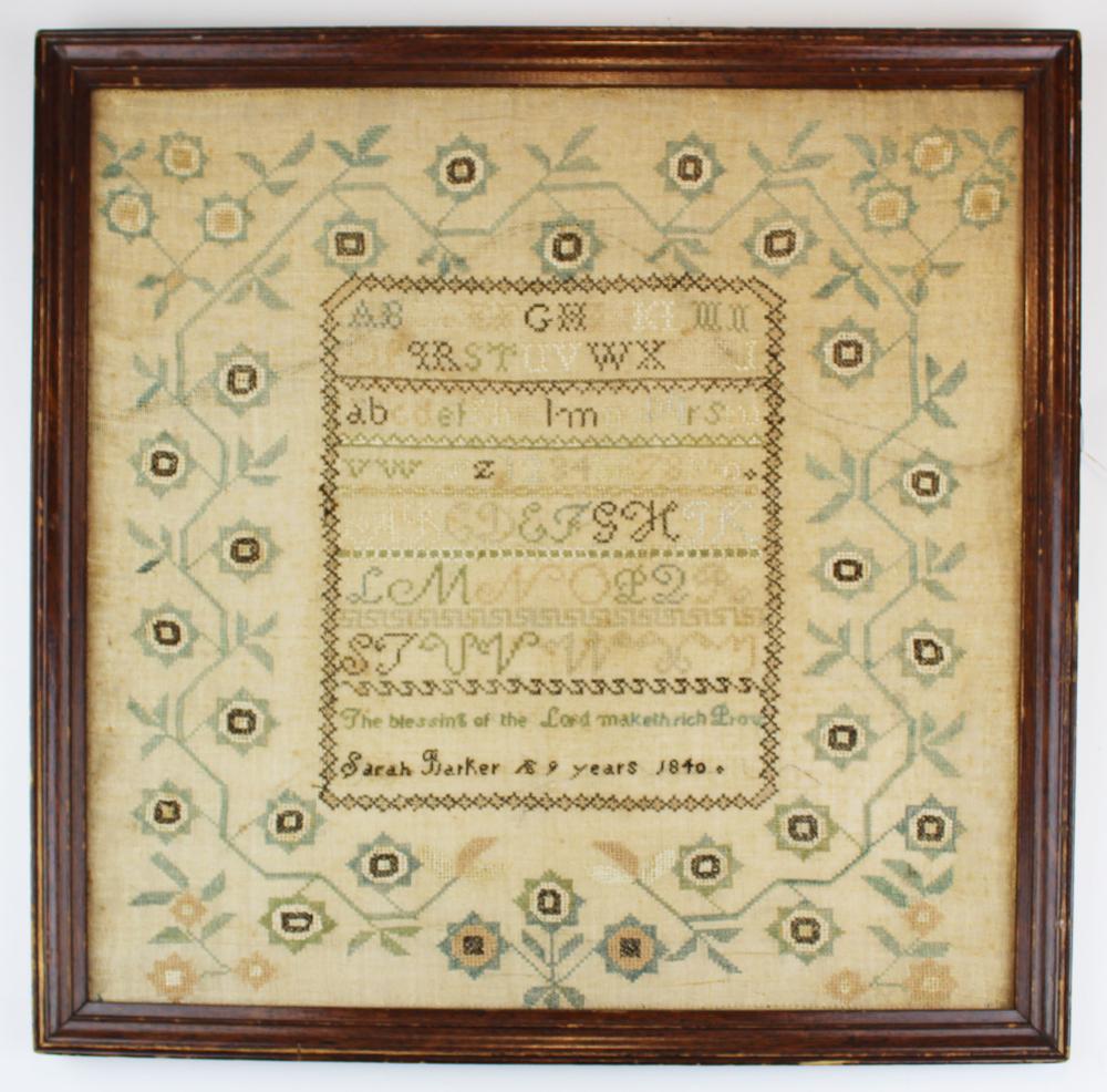 Model is stitched on 36 ct. Parchment linen from Weeks Dye Works