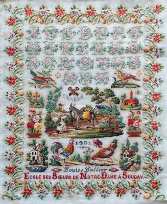 Antique French Sampler Reproduction by Isabelle Mazabraud Model stitched ...- Prix normal