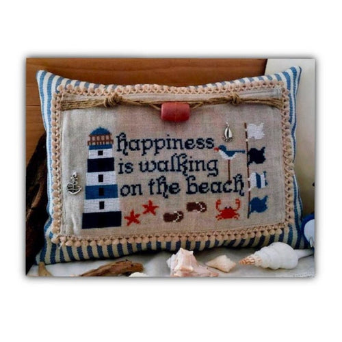 "Happiness is walking on the beach" * Model stitched on 28 ct. linen (unspeci...- Prix normal