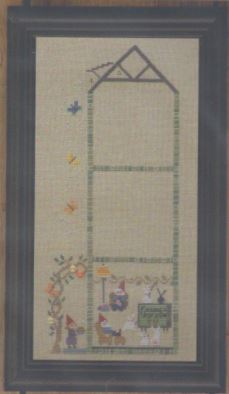Model stitched on 32ct Clay Linen