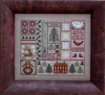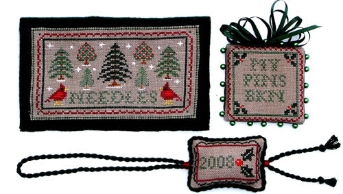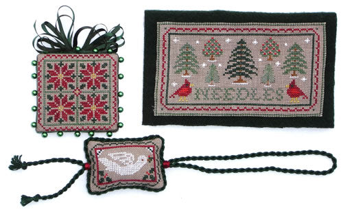 Blue Ribbon has introduced a seasonal sampler and set of smalls that is a have. The combination of Christmas and winter motifs stitched as a sampler, or made into needlework smalls gives you so many options. You can make ornaments out of your favorite parts, stitch the pinkeep, scissor fob, or needlebook, too. The sampler finishes approx 8-1/2 x 9-1/2 on 32ct. Offered as a chart.