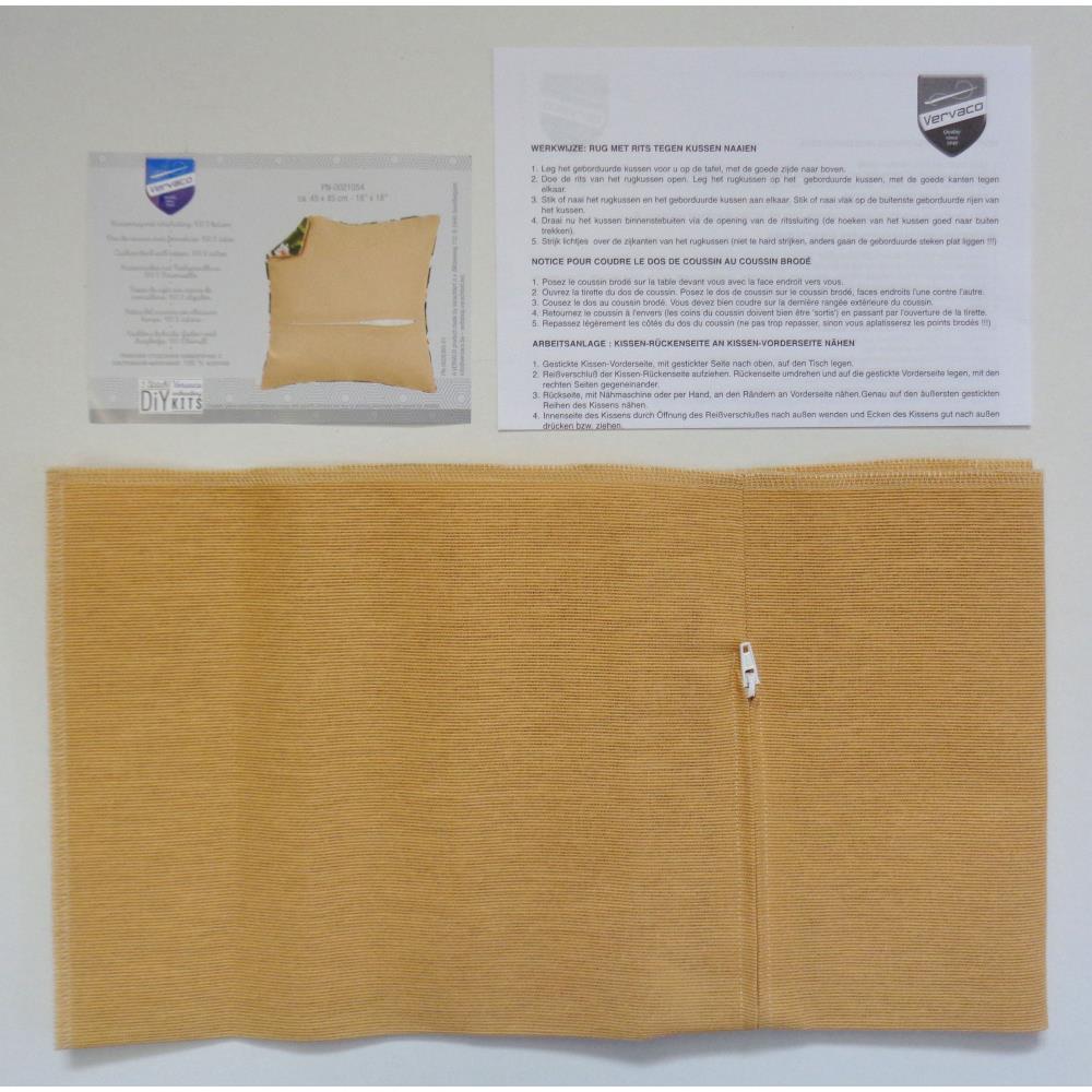 Vervaco-Cushion Back With Zipper. Give your pillow designs a cushioned back! Includes zipper for easily removing and inserting your pillow! This package contains one 100% cotton 18"x 18" beige cushion back with zipper.