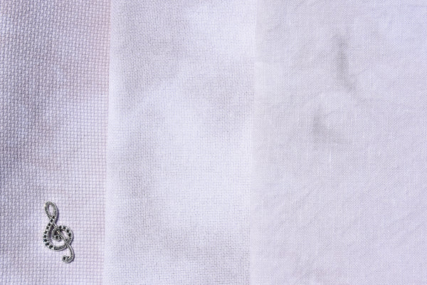 Model stitched on 28 ct. Misty Mountain linen from Grace Notes Fabrics