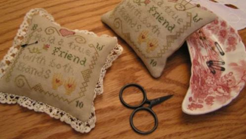 Model stitched on 32 ct. Creme Brulee linen from R&R Reproductions