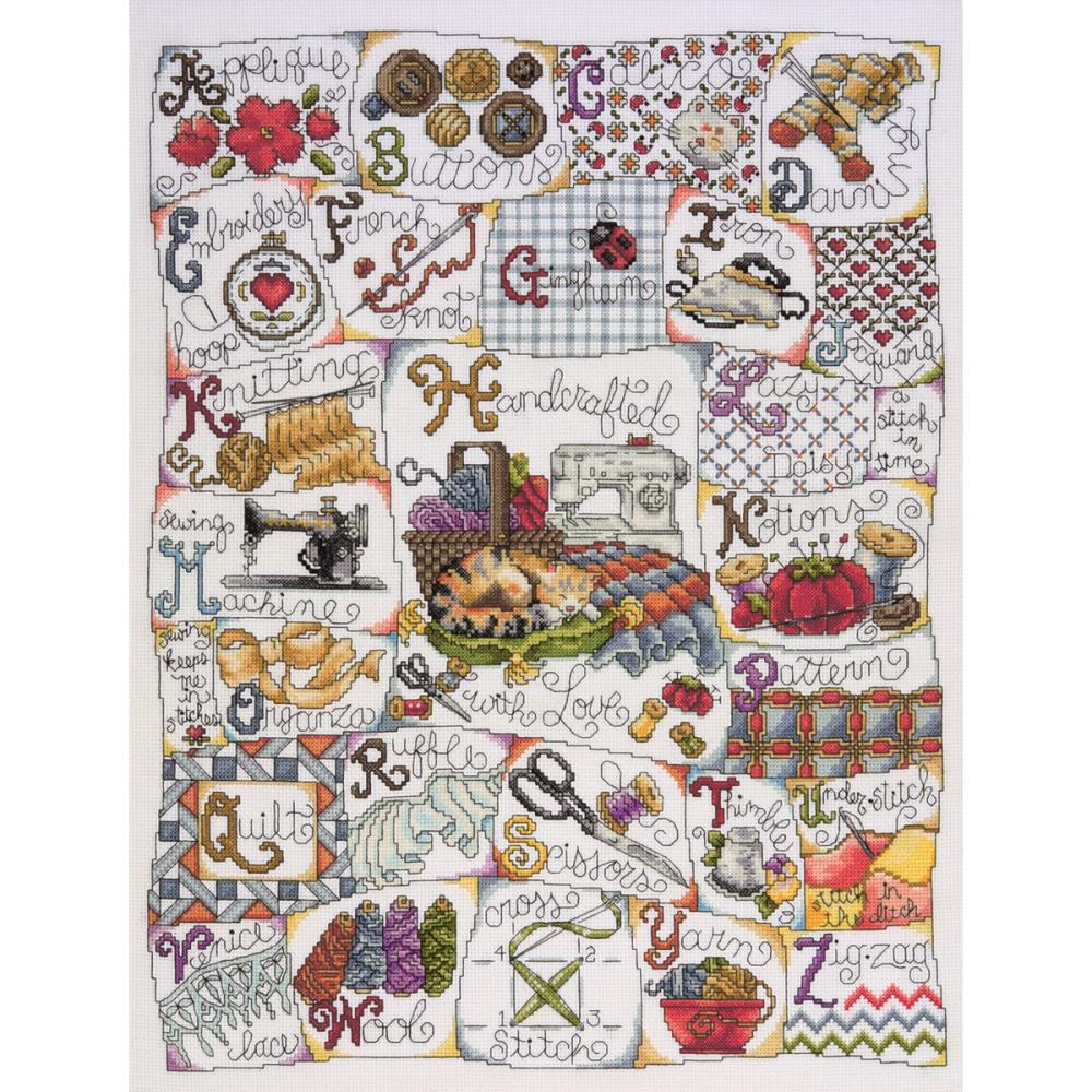 Kit includes 14-count Aida cloth, embroidery floss, needle and instructions.