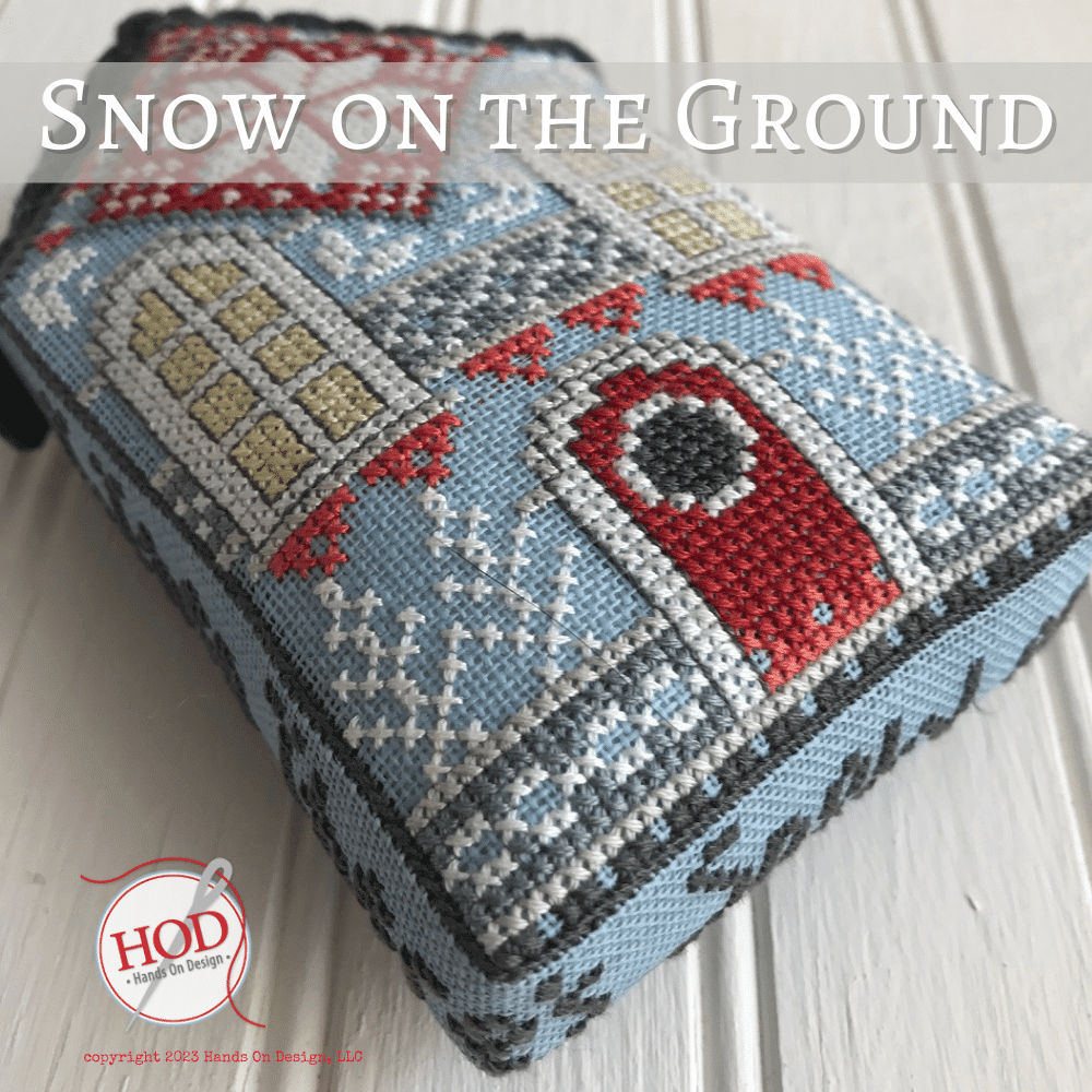 Model stitched on 28 ct. Touch of Blue linen from Wichelt