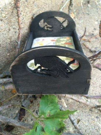 Wooden tray measures approx 4" x 6" x 1.5" high at the sides and 3" at the handles