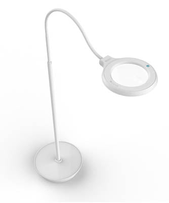 - 5” diameter optical grade magnifier provides 2X magnification and includes a 1”, 5X bifocal inset. Magnifier head can be adjusted to 34" high (in a horizontal plane) at its lowest point.