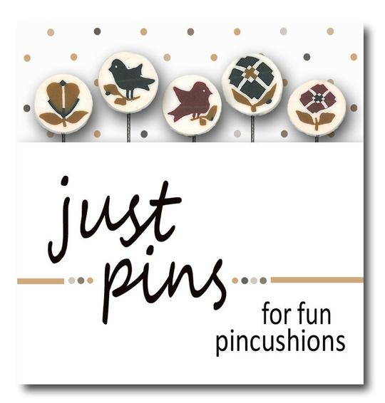 Straight pins topped with classic button images, wear one or stick a few in a pin cushion - packaged in the pictured assortments of five pins