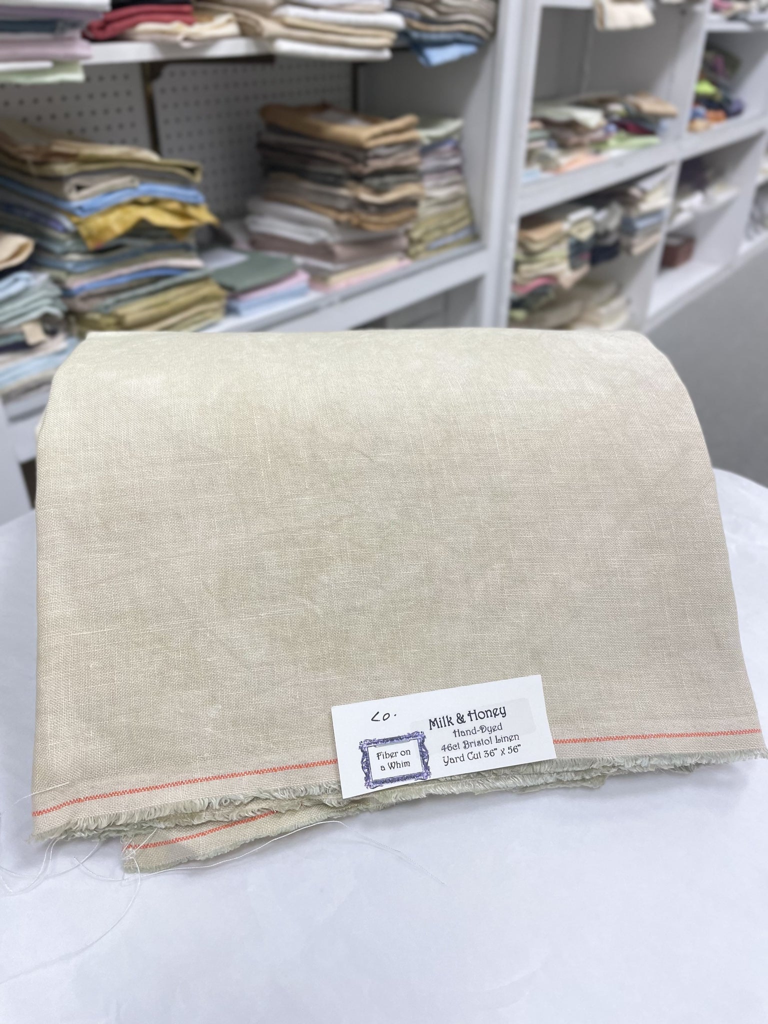 Models Stitched on 46 ct. French Pear Linen from Number 12 Stitch Co