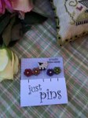 Kit includes 32 ct. Sandstone linen, overdyed floss, little buttons for embellishment, green rick rack, black glass beads and wool felt for the backing, the chart w/instructions and a needle.