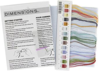 presorted thread, 14 count light blue Aida, needle, and instructions.