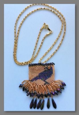 Kit includes Delica beads, specialty beads, pinback, gold chain, findings, Nymo thread, instructions and needles.