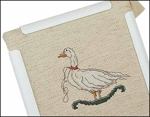 Q-Snap Frame. Unique method to hold fabric taut while stitching. Four plastic C-shaped clamps hold the fabric onto the four sides. Tension is easy to adjust. You have a smooth stitching surface around entire frame without “hoop wrinkles”. The Q-snap frame comes apart in seconds to store or to carry in practically any tote