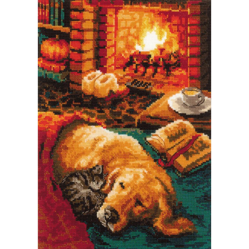 Kit includes 14 count white Aida Zweigart fabric, woolen/acrylic threads in twenty five colors, a needle, instructions and color chart.