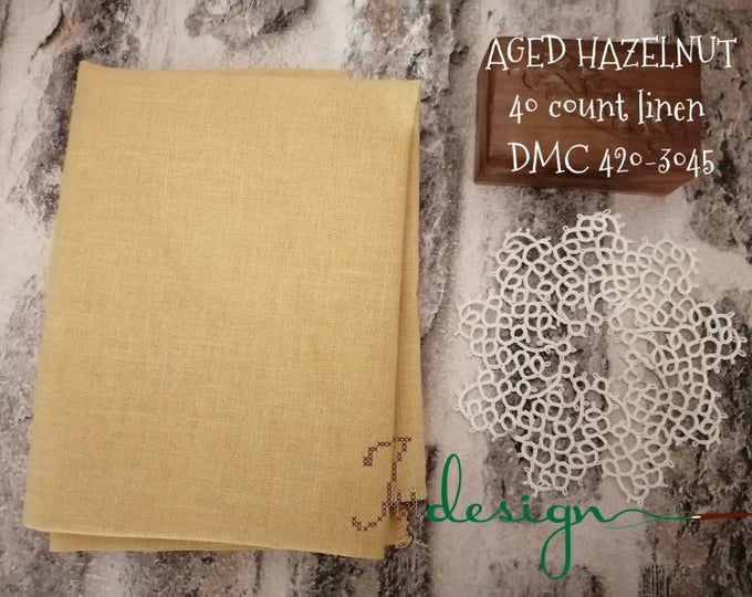 Model stitched on 40 ct. Aged Hazelnut linen from XJuDesigns