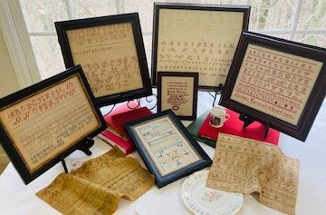 Six antique marking samplers from Judy's collection are included in this booklet.  The samplers were stitched from 1787 to 1882 and each is unique.  Judy also included as much historical information about each sampler as possible.