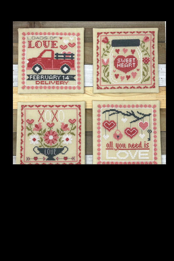 Model stitched on 28 ct. Clay/Barn Grey linen from Wichelt