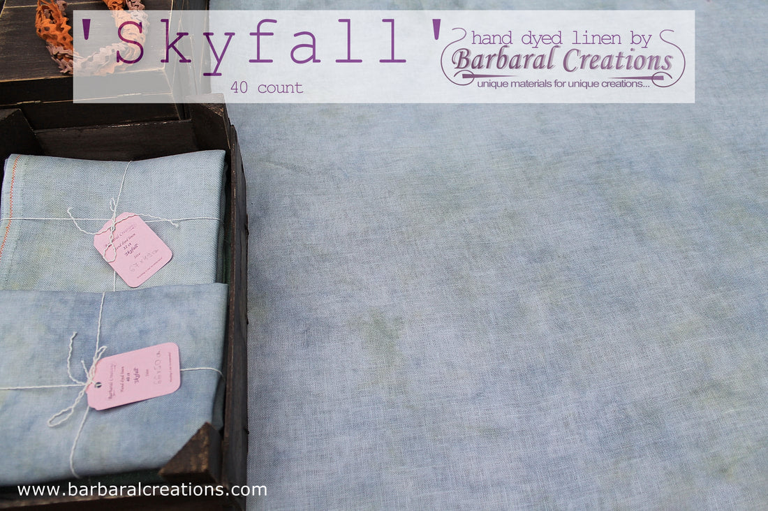 Model stitched on 40 ct. Skyfall linen from Barbaral Creations