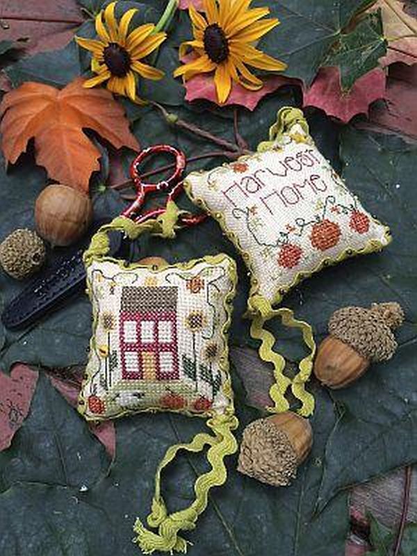 Kit includes 32 count linen, overdyed threads, buttons, beads and green apple ric rac for the edging. . Finished size is approx. 3" x 3"